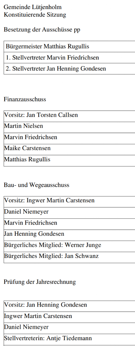 Fragen rund um die Gemeinde Lütjenholm, zum Gemeinderat oder zu den einzelnen Ausschüssen erteilt ausschließlich Bürgermeister Matthias Rugullis telefonisch unter der Nummer 04672 772626.