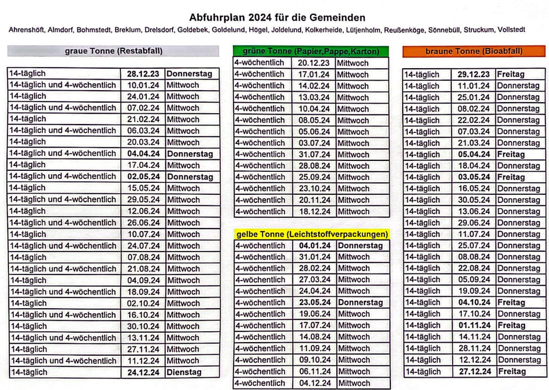 Müllabfuhr 2024 - Lütjenholm - das schönste Dorf der Welt
