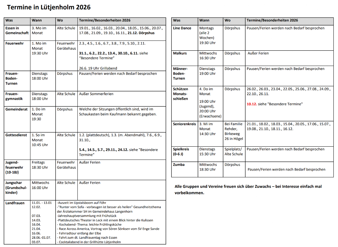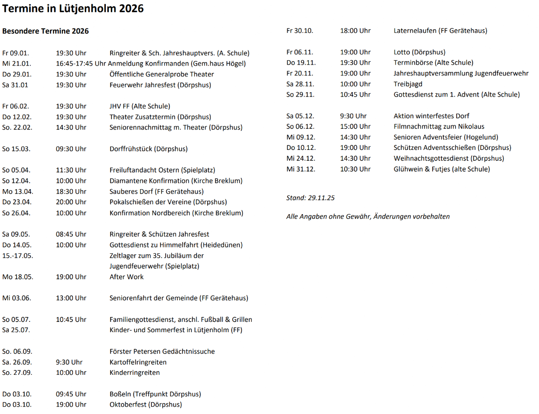 Termine 2026 - Lütjenholm - das schönste Dorf der Welt